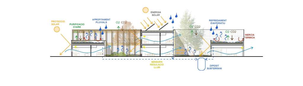The building has facilities such as photovoltaic modules for self-consumption, highly efficient air conditioning and lighting systems, and instantaneous water heating close to consumption points, all intended to contribute to sustainability and cost savings actively. In addition, the building is designed to minimise its environmental impact by utilising durable and low-maintenance materials, industrialised components, recycled materials, and passive systems, ultimately achieving a low energy demand and approaching self-sufficiency.