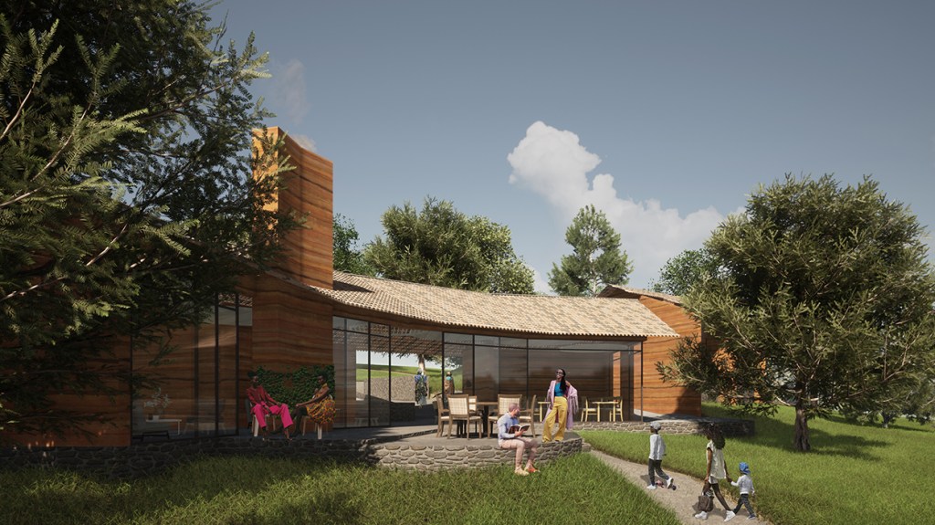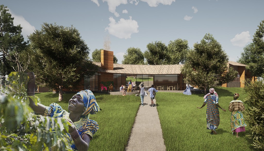 A sustainable and locally designed guest house nestled on the serene shores of Lake Kivu in Rwanda, with a breathtaking view of the Democratic Republic of Congo, surrounded by a curated landscape of native plants.