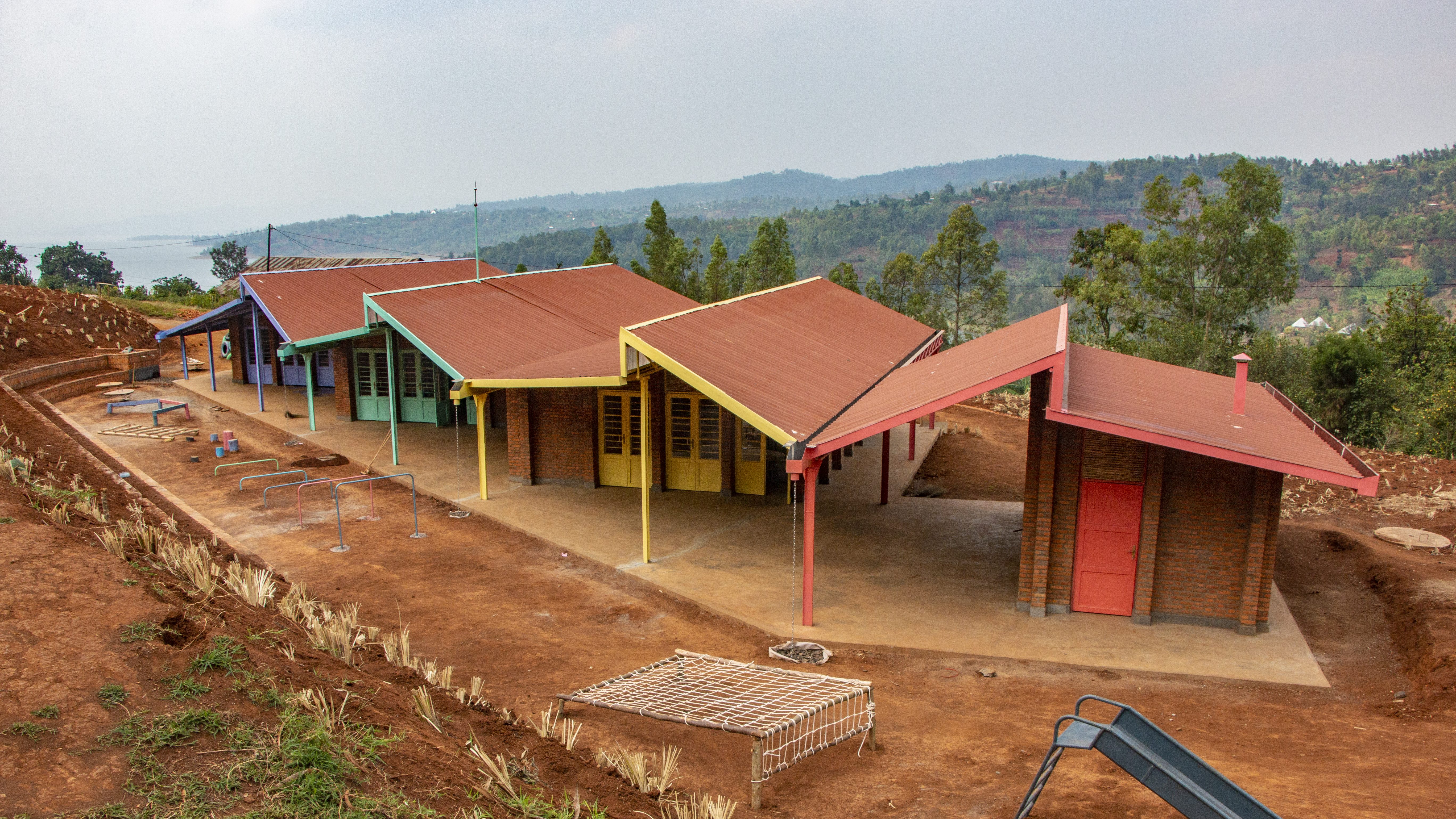 The public pre-primary school of Mwito – Nyamasheke district, Rwanda – sits on a steep plot, slightly lower than the primary school, and enjoys views over Lake Kivu, the rice fields on the bay and neighbouring Eastern DRC.