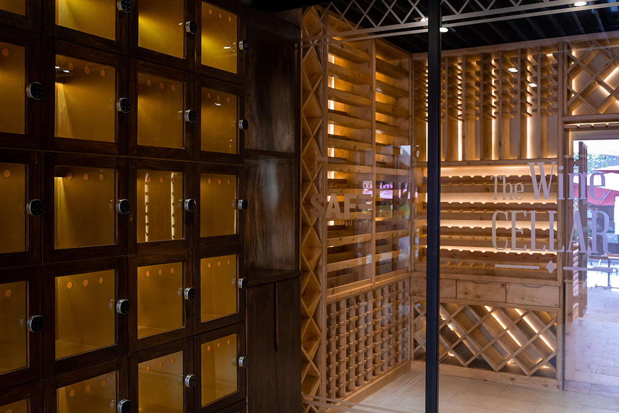 Este proyecto es una combinación de bodega de vinos, bar de cócteles y casillero para licores personales de clientes habituales. El espacio alargado se divide en dos zonas: una barra al frente y una bodega al fondo. La zona frontal está dividida por una pared de taquillas, a modo de biblioteca, a la izquierda, y una barra de bar que ofrece servicio de cócteles a la derecha. La bodega cuenta con diversas opciones de arreglos, permitiendo realizar eventos de cata de vinos.