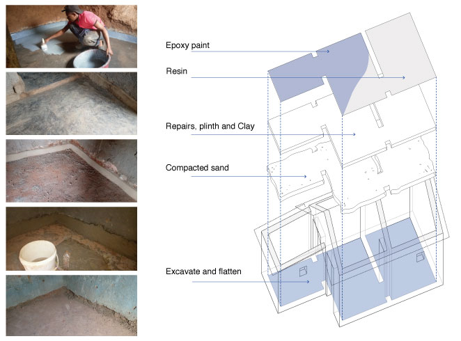Hay muchas posibilidades de intervención para mejorar esta situación, nosotros propusimos el pavimento de las viviendas como un medio eficaz, alcanzable y asequible para abordar problemas relacionados con la desnutrición y otras enfermedades relacionadas con las condiciones interiores de las viviendas agravadas por la falta de pavimentos. Creative Assemblages y P+A, a través de la ONG ANM con sede en Barcelona, obtuvieron la “subvención de cooperación” del Colegio de Arquitectos de Cataluña (COAC) para desarrollar el proyecto en colaboración con ACNUR Ruanda y Earth Enable. Esta organización construye y promueve pavimentos de tierra en Ruanda y Uganda.