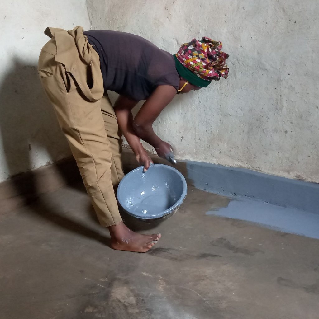 Los suelos de tierra desarrollados localmente mejoran las viviendas del campo de refugiados de Mugombwa ofreciendo un entorno más saludable.